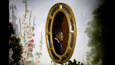 President Barack Obama is reflected in a mirror as he meets with newly-elected governors at Blair House, Dec. 2, 2010. (Official White House Photo by Lawrence Jackson)