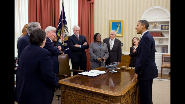 President Barack Obama talks with Sen. Chris Dodd and other guests before signing the “CAPTA Reauthorization Act of 2010,” (Child Abuse Prevention and Treatment Act) in the Oval Office, Dec. 20, 2010. (Official White House Photo by Pete Souza)