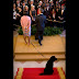 Bo, the Obama family dog, sits behind President Barack Obama and First Lady Michelle Obama, as the President delivers remarks during a holiday reception in the Grand Foyer of the White House, Dec. 15, 2010. (Official White House Photo by Pete Souza)
